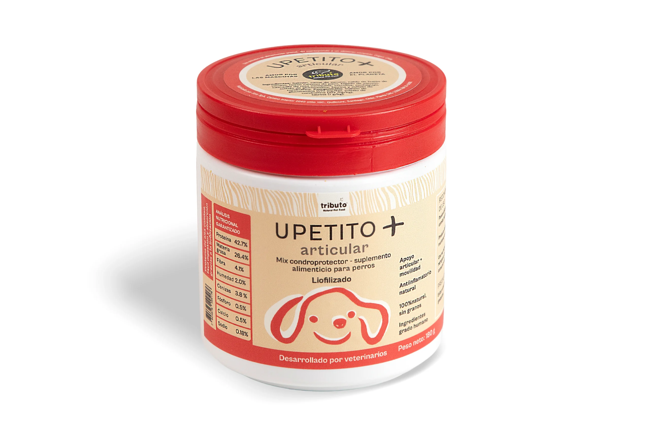 UPETITO + Articular para Perros 180 g es un suplemento alimenticio liofilizado formulado como mix condroprotector para apoyar la salud articular y la movilidad.